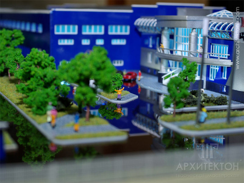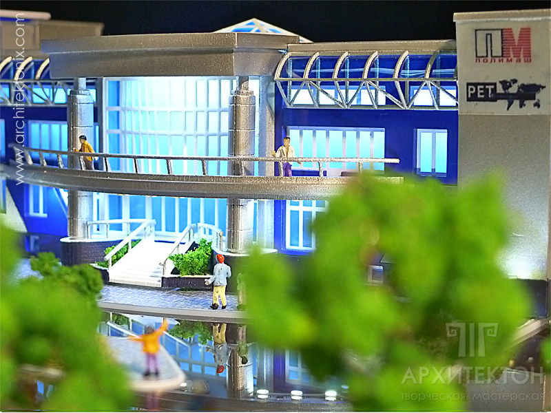 Materials model: wood, plastic, glass, brass, LED lights. Used 3D printing.